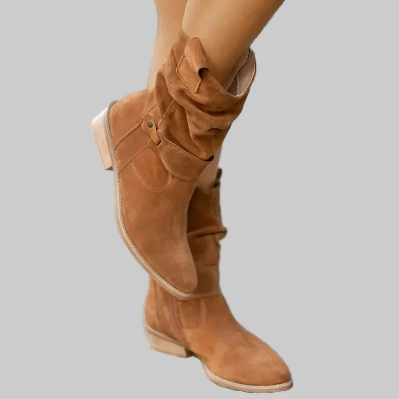 • Ρουστίκ και Κομψό Στυλ: Το μαλακό σουέτ και ο σχεδιασμός μεσαίου ύψους προσφέρουν μια διακριτική western αίσθηση, ιδανική για καθημερινές εμφανίσεις.