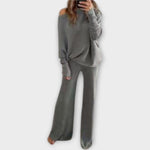 Πλεκτό σετ με φαρδύ παντελόνι και χαλαρό πουλόβερ