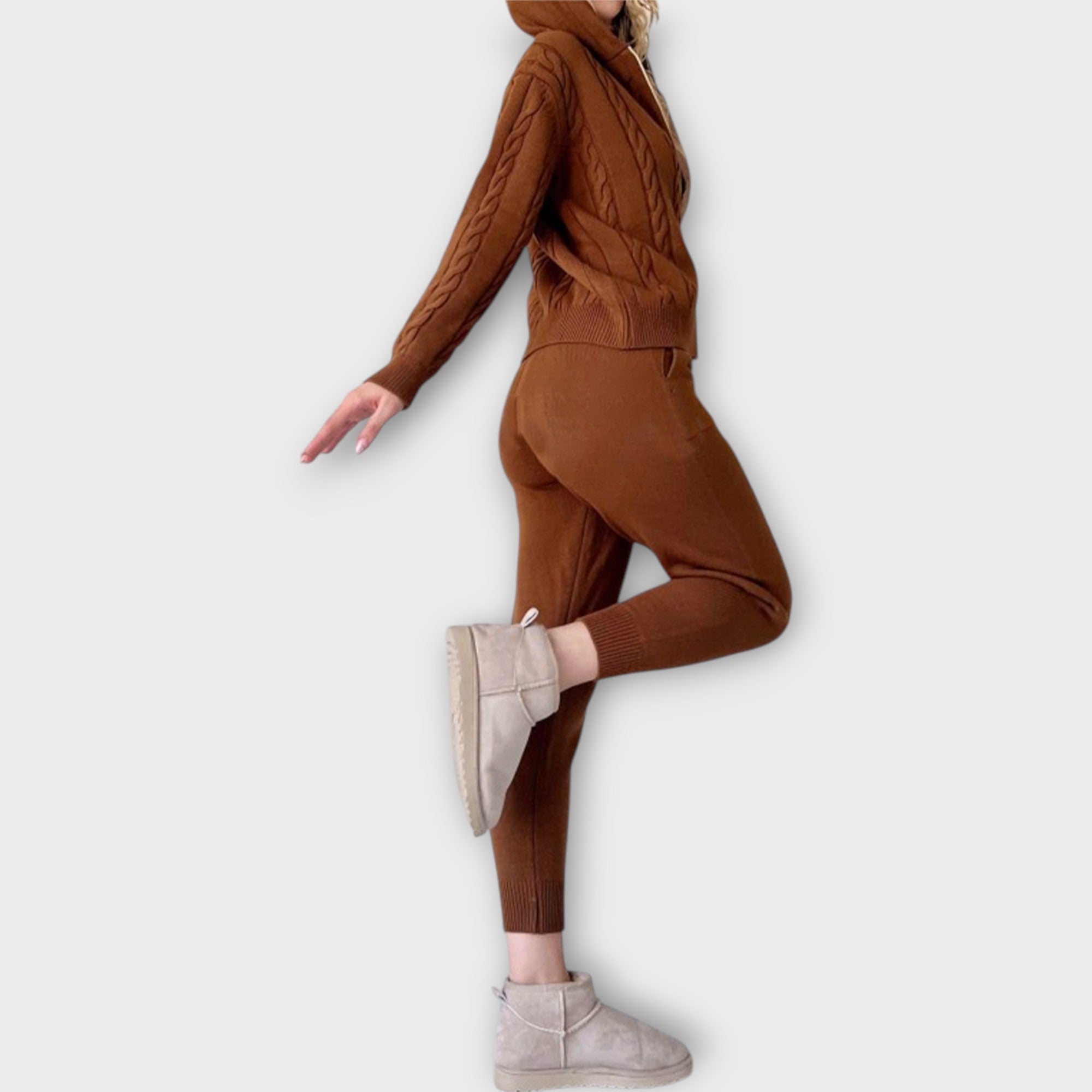 Πλεκτό Σετ με Κουκούλα και Ζακέτα