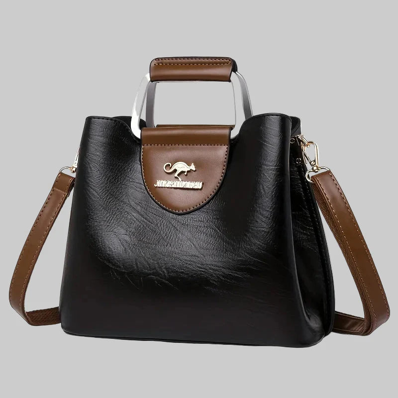 • Κομψός συνδυασμός χρωμάτων: Ο κλασικός συνδυασμός μαύρου και καφέ προσφέρει εξαιρετική ευελιξία, διασφαλίζοντας ότι η τσάντα συμπληρώνει σχεδόν κάθε ντύσιμο στην γκαρνταρόμπα σας.
