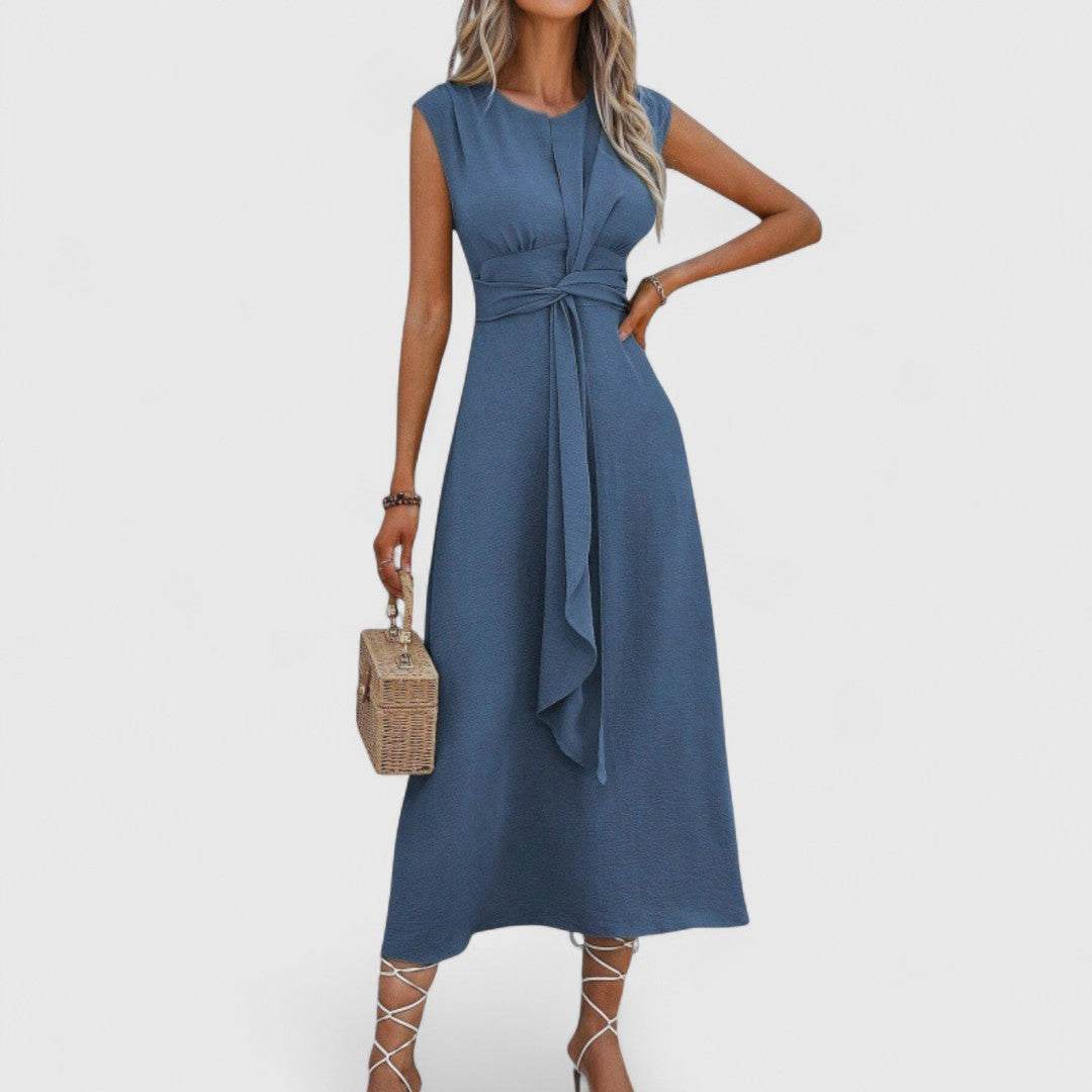 Πηνελόπη - Αέρινο μάξι φόρεμα χωρίς μανίκια με κολακευτικό στρογγυλό ντεκολτέ